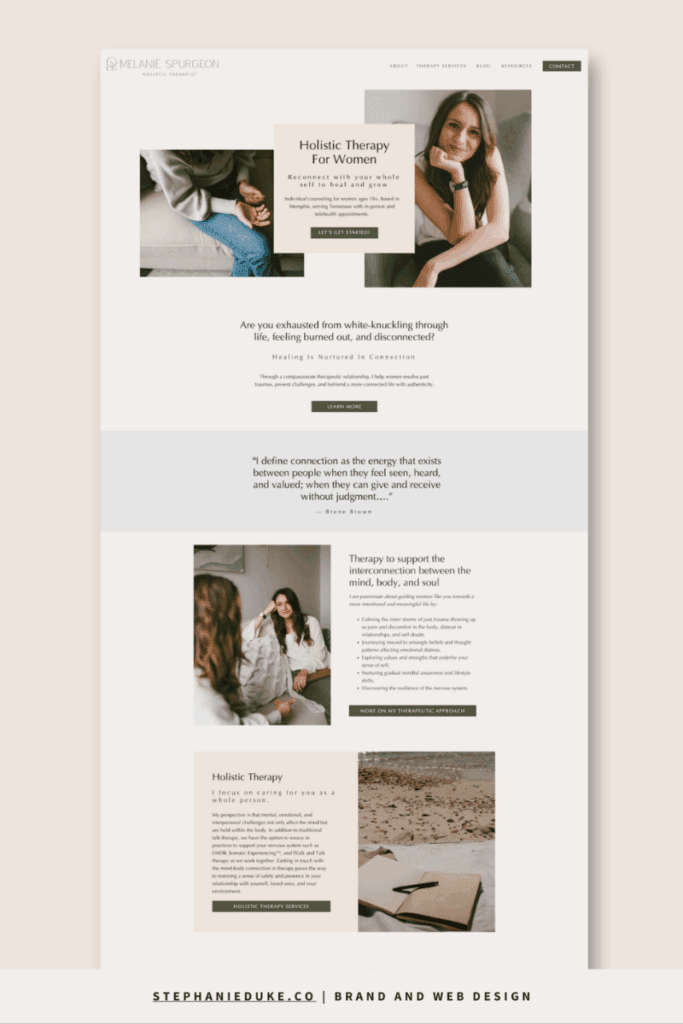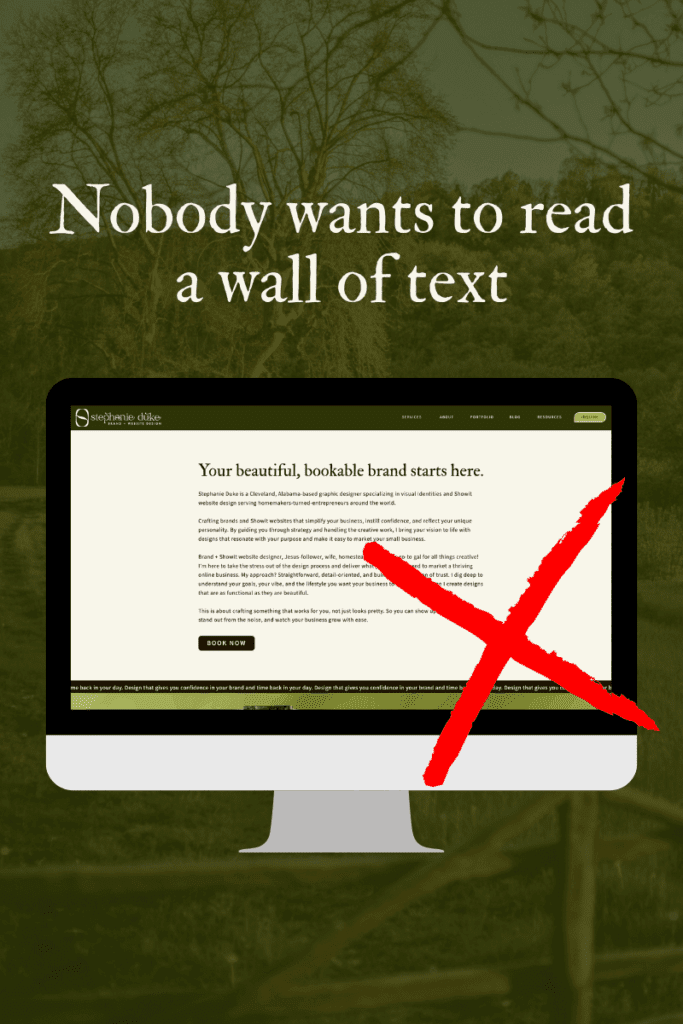 The problem with long, heavy paragraphs is your message gets buried and your visitor bounces before seeing what makes your brand the best fit. A beautiful, bookable brand doesn’t overwhelm. It guides. It communicates quickly. It builds momentum section by section.